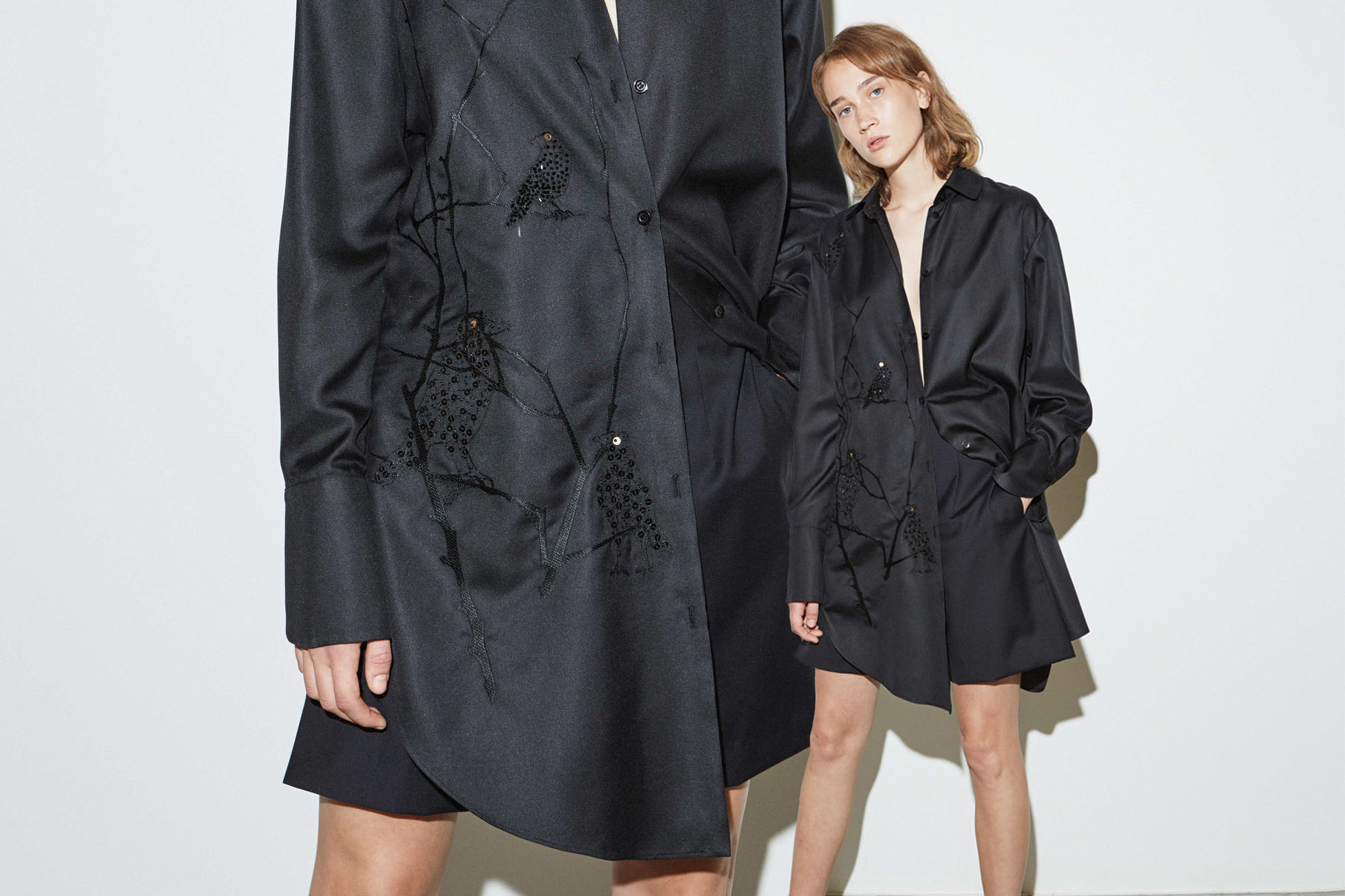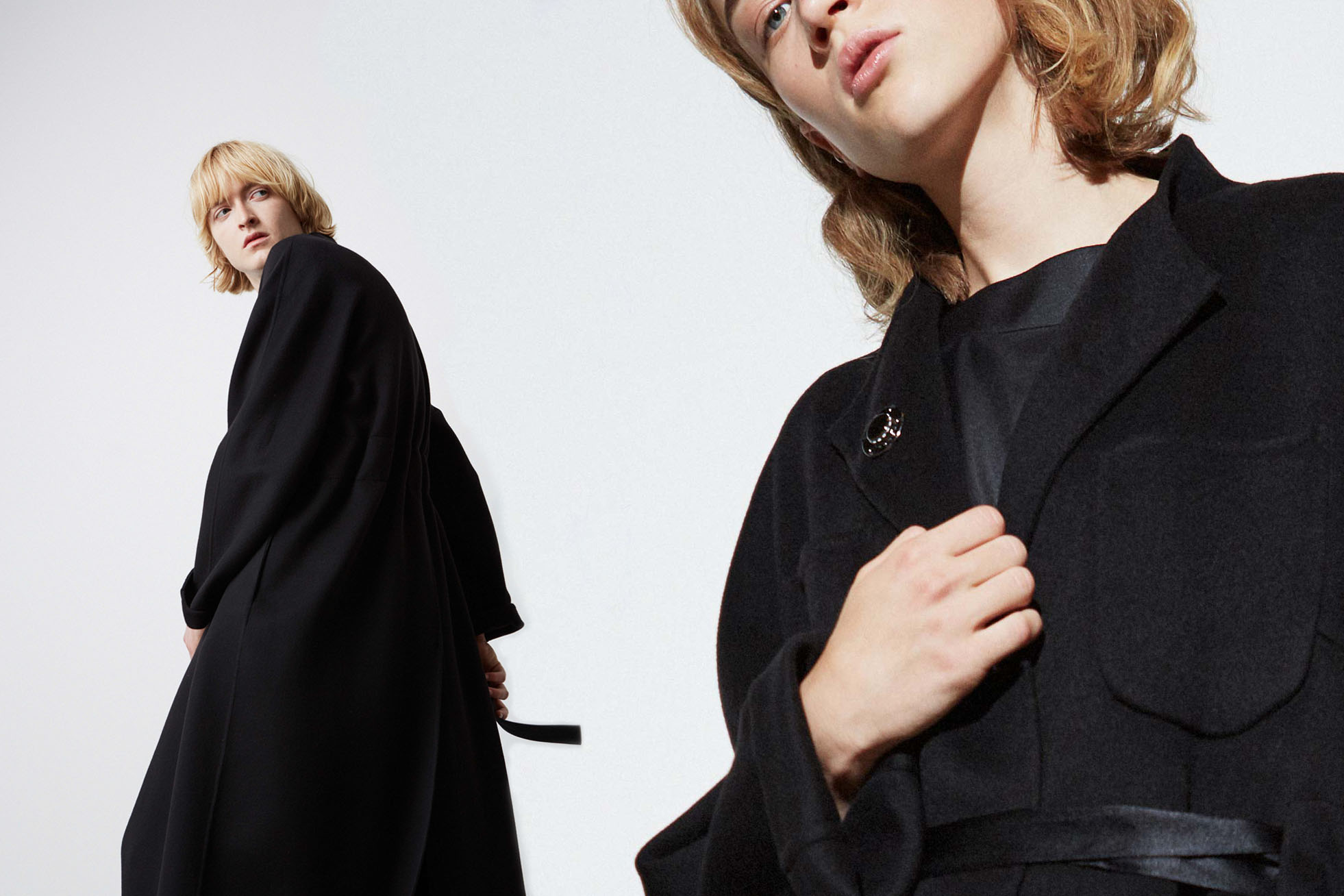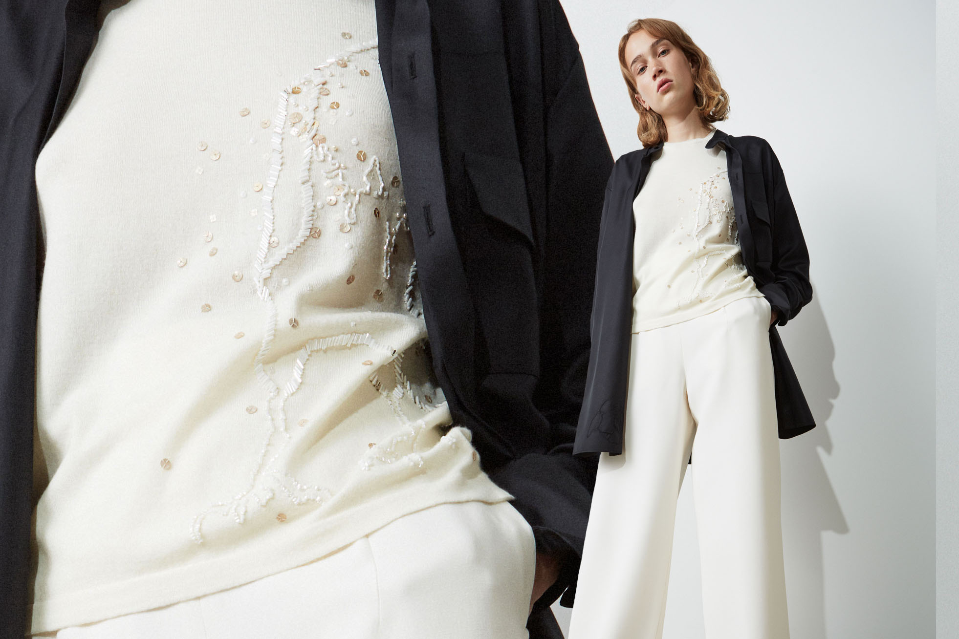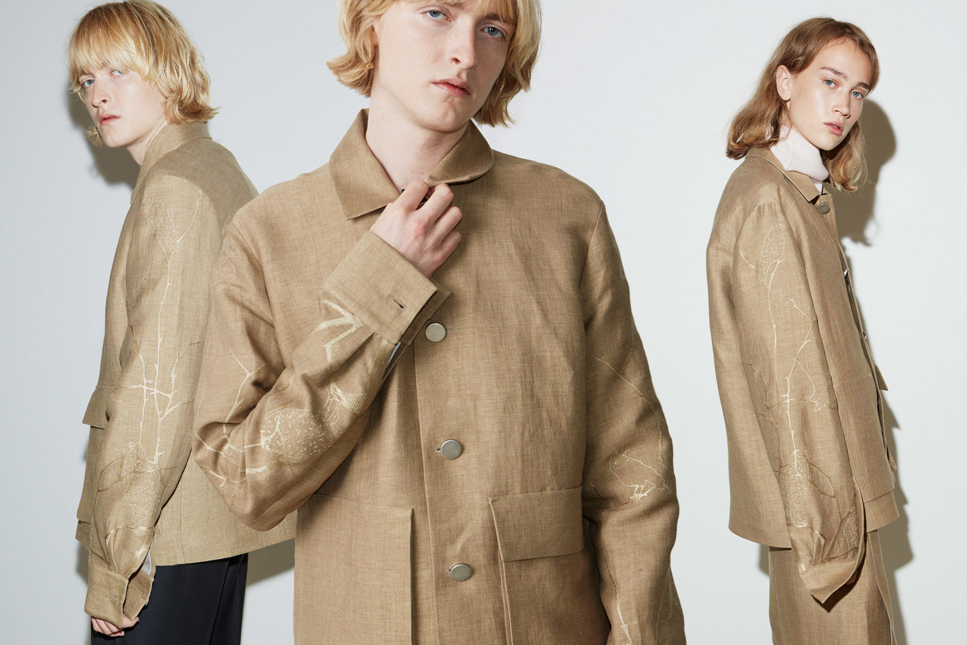 This season, documented in a brutalist art gallery in Tallinn, the garments appear simple, understated and minimalist at a first glance. A closer inspection reveals the innate construction, hand-sewn button fastenings, subtle zip closures and meticulously applied embroideries. These hand-sewn beaded pictograms interpret forlorn Estonian folk-tales, as experienced by the discerning tailor’s hand. This solemn craftsmanship reminds us of different times, away from the hustle and bustle. SS19 is a curation of easily worn wardrobe staples, independent to any longitude or latitude, you might choose to wander along.